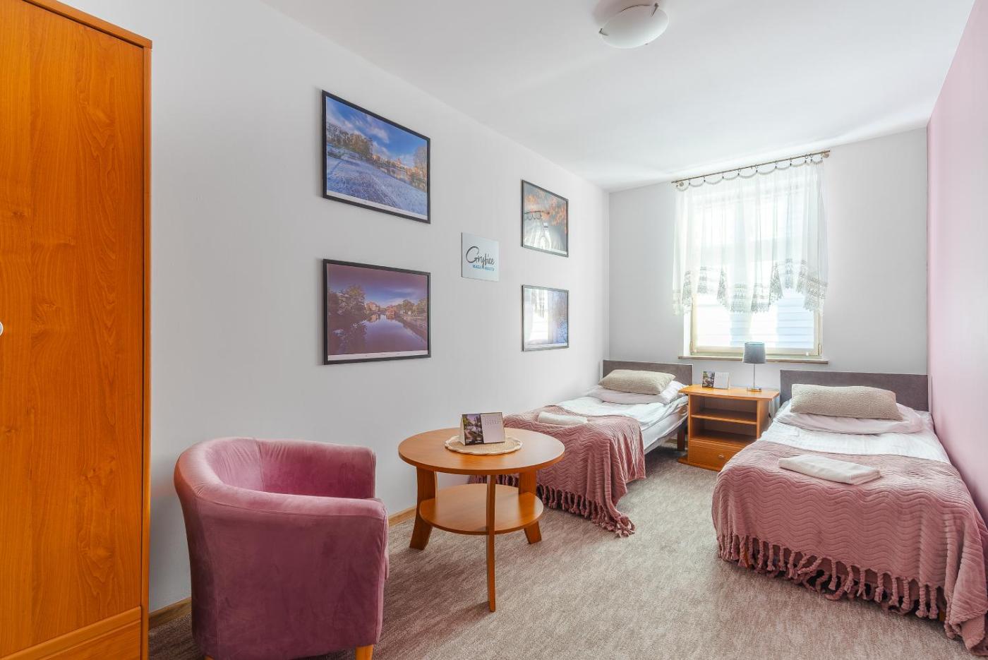 Pokój dwuosobowy z prywatną łazienką. Offering free toiletries, this double room includes a private bathroom with a shower and a hairdryer. The double room has carpeted floors and offers a dining area, a wardrobe and city views. The unit has 2 beds. Pokój Dwuosobowy - 2 osobowy. Powierzchnia pokoju ok.: 10 mkw.