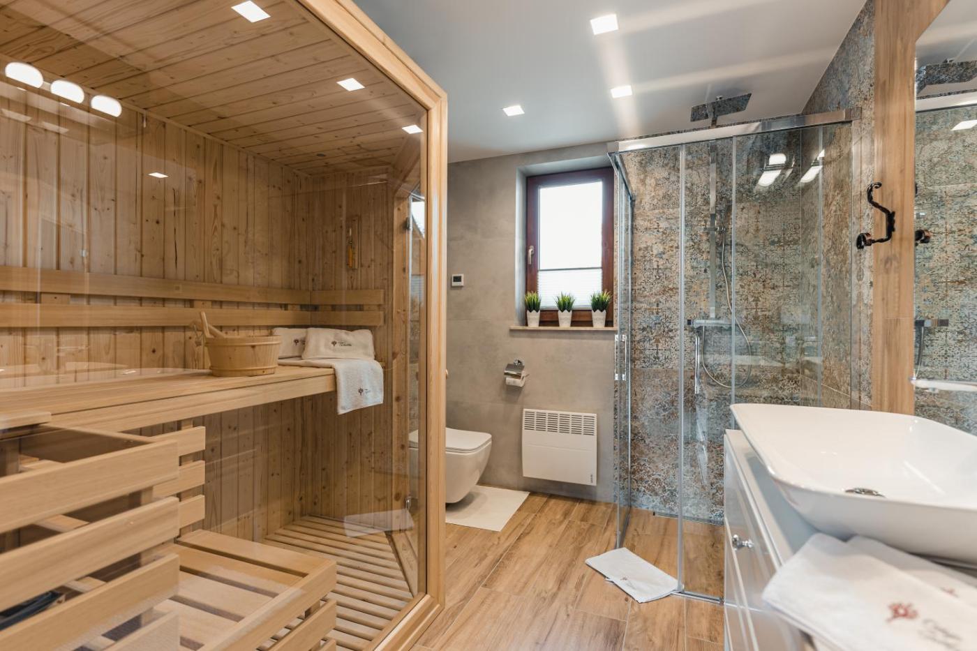 Apartament z 1 sypialnią. Jest to luksusowy apartament z sauną, kominkiem oraz basenem z widokiem na okolicę. Ten apartament z prywatnym wejściem mieści oddzielną sypialnię, salon oraz łazienkę z prysznicem i suszarką do włosów. W dobrze wyposażonej kuchni przygotowano płytę kuchenną, lodówkę, przybory kuchenne i zmywarkę do naczyń. Goście mogą także korzystać ze sprzętu do grillowania. Pozostałe udogodnienia obejmują pralkę, telewizor z płaskim ekranem i dostępem do serwisów streamingowych oraz balkon z widokiem na basen. W tej opcji zakwaterowania znajdują się 2 łóżka. Apartament - 4 osobowy. Powierzchnia pokoju ok.: 52 mkw.