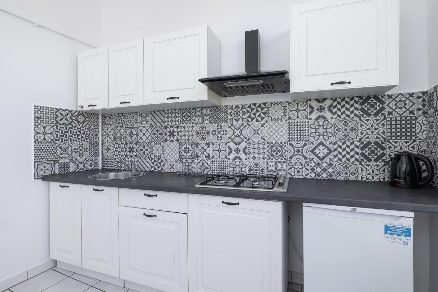 W apartamencie zapewniono sypialnię (1), kuchnię z lodówką i płytą kuchenną, a także łazienkę (1) z prysznicem, suszarką do włosów oraz pralką. W apartamencie zapewniono ręczniki i pościel.