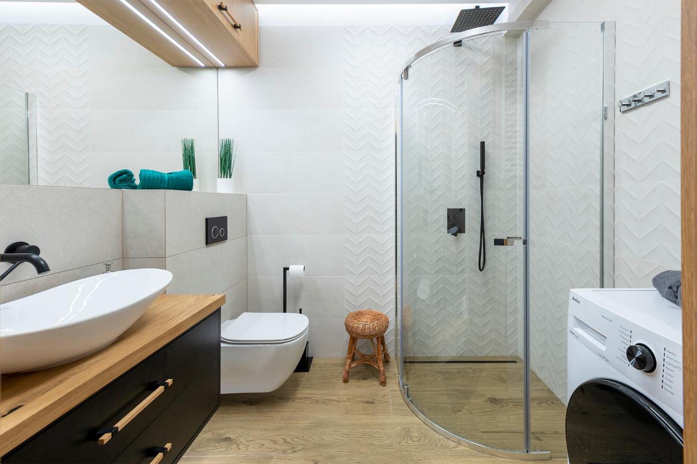 W sypialni znajduje się pościel oraz szafa lub garderoba, co zapewnia odpowiednią przestrzeń do przechowywania rzeczy. W łazience zlokalizowanej w apartamencie goście znajdą papier toaletowy, ręczniki, suszarkę do włosów.