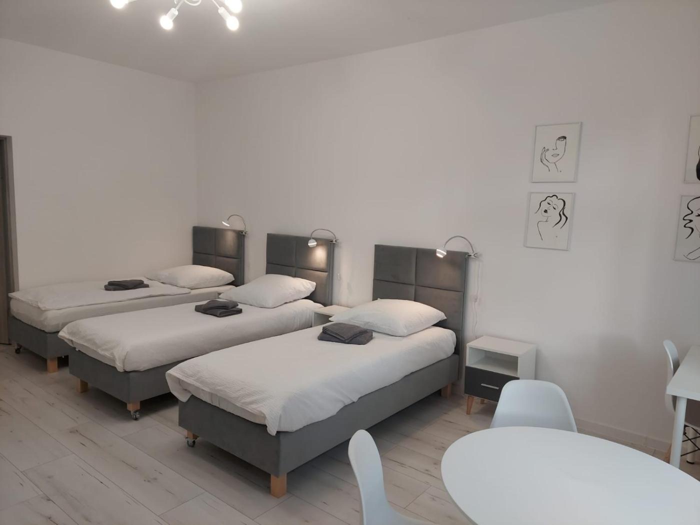 Apartament z 2 sypialniami. This spacious apartment comprises 2 bedrooms, a kitchen and 1 bathroom with a shower and a hairdryer. The fully equipped kitchen features a stovetop, a refrigerator, kitchenware and a microwave. The apartment provides a flat-screen TV, a washing machine, a dining area, a wardrobe as well as ancourtyard view. The unit offers 6 beds. Apartament - 5 osobowy. Powierzchnia pokoju ok.: 64 mkw.