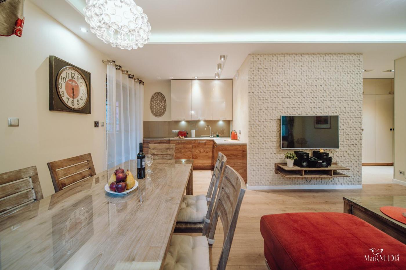 W apartamencie do dyspozycji gości przygotowano taras, sypialnię (1), salon oraz aneks kuchenny z doskonałym wyposażeniem. Goście mają do dyspozycji telewizor z płaskim ekranem.