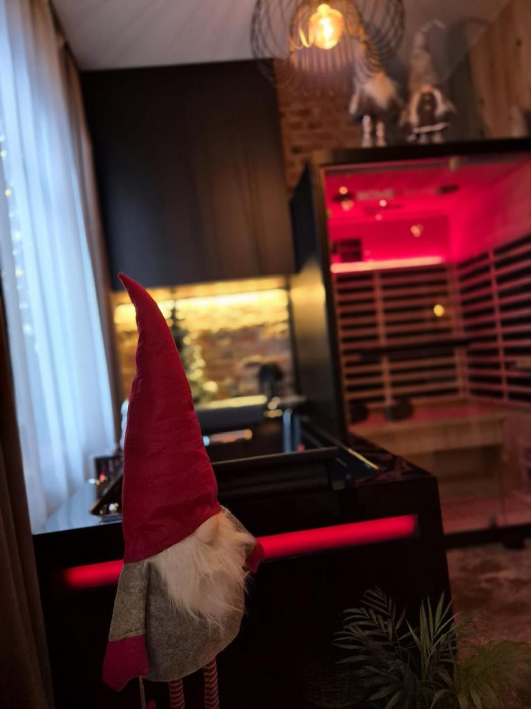 Zaplecze odnowy biologicznej obiektu Apartament Przy Murach obejmuje saunę i wannę z hydromasażem.